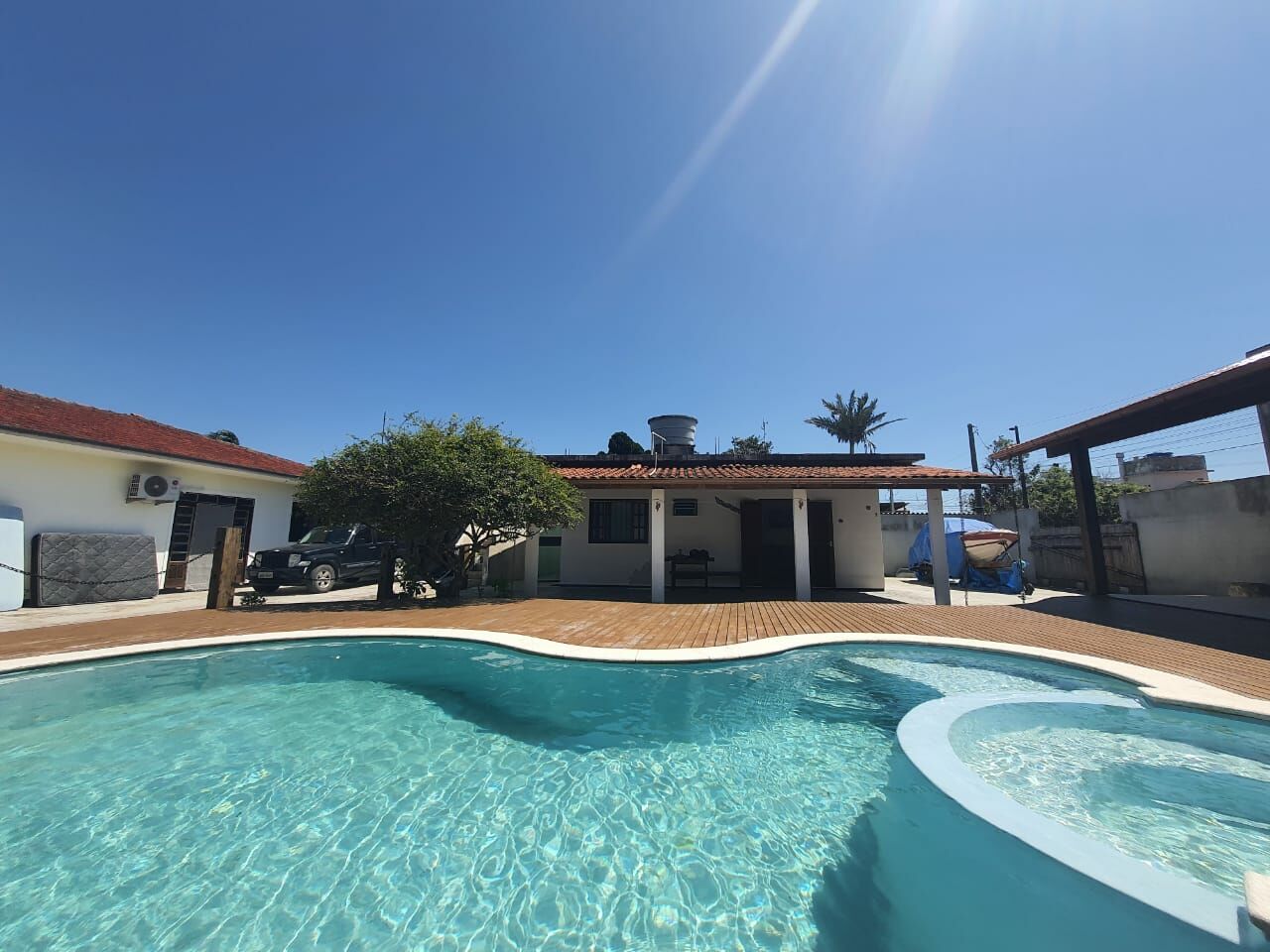 Quintal grande com piscina, Jardim e vaga para 5 carros